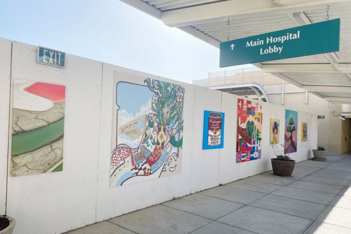 Standing before the row of colorful drawings (plus one photo), community member and artist Susan Longini quotes a National Institute of Health study that found art in hospital settings boosts the physical and psychological wellbeing of not only patients but families and staff as well.